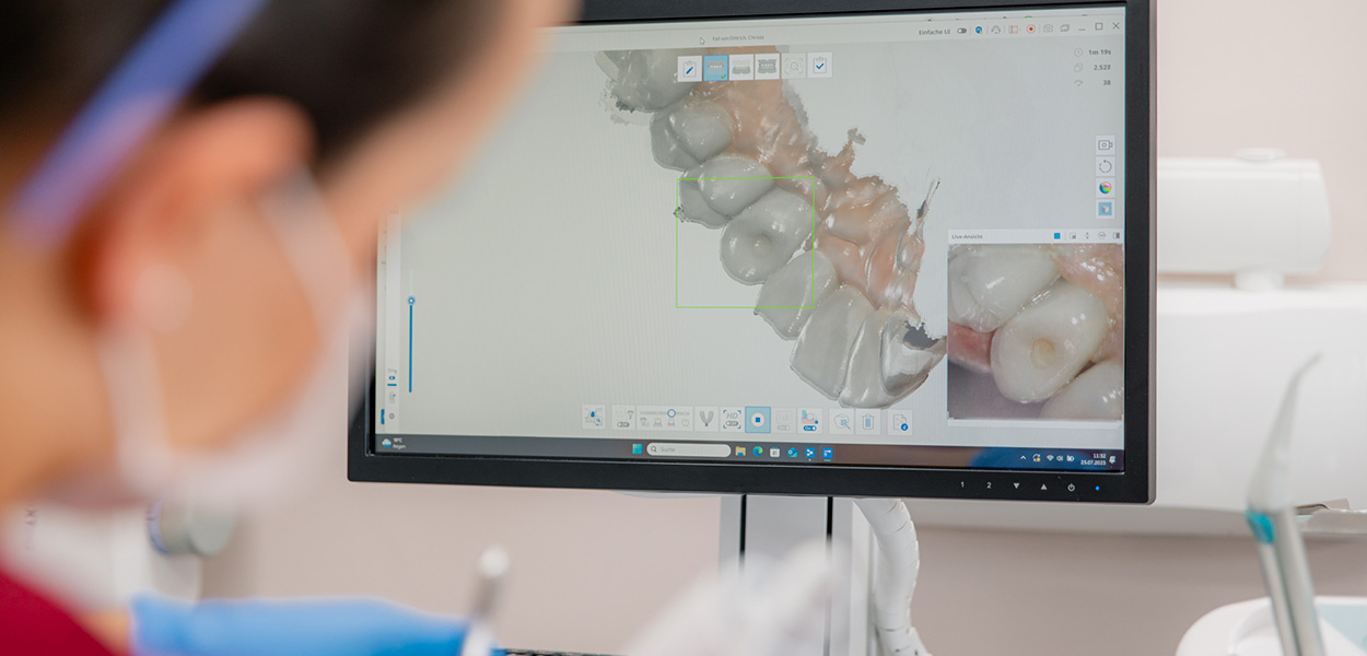- Unser 3D-Intraoralscanner ermöglicht eine abdruckfreie Zahnmedizin. Der unangenehme Zahnabdruck kann entfallen.